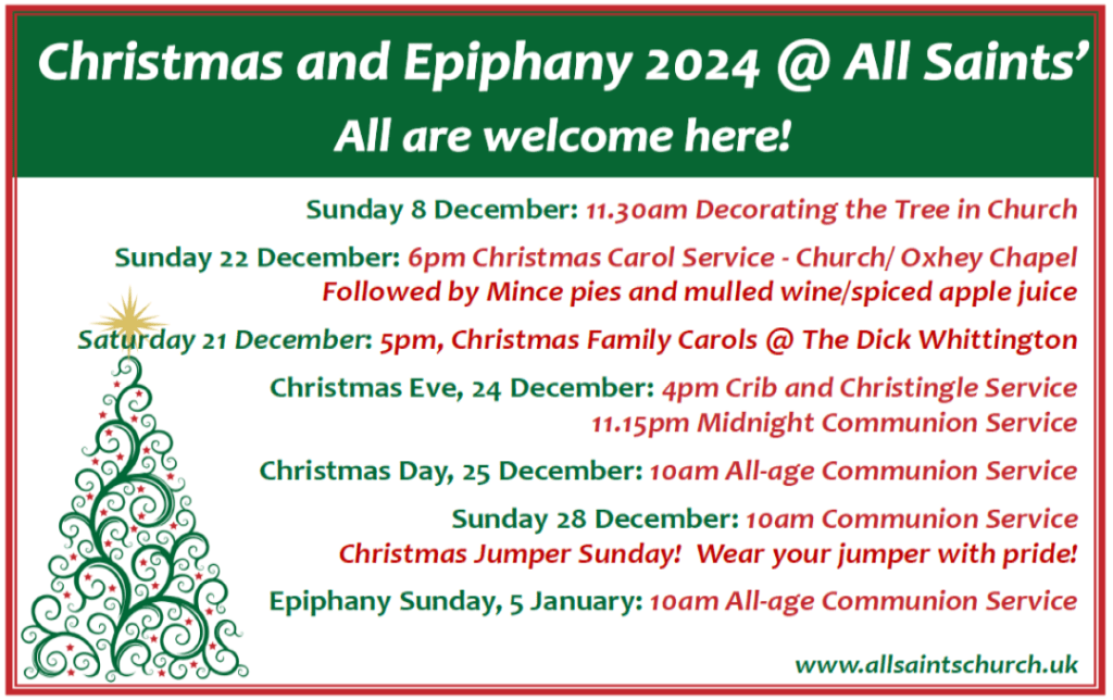 You may have been given one at Christmas, so come and wear it with pride at our 10am service on the Sunday after Christmas. It is still the Christmas Season in the Church’s year, which gives the perfect excuse to save your Christmas jumper from the moth balls for a while! There will be a prize for the best!